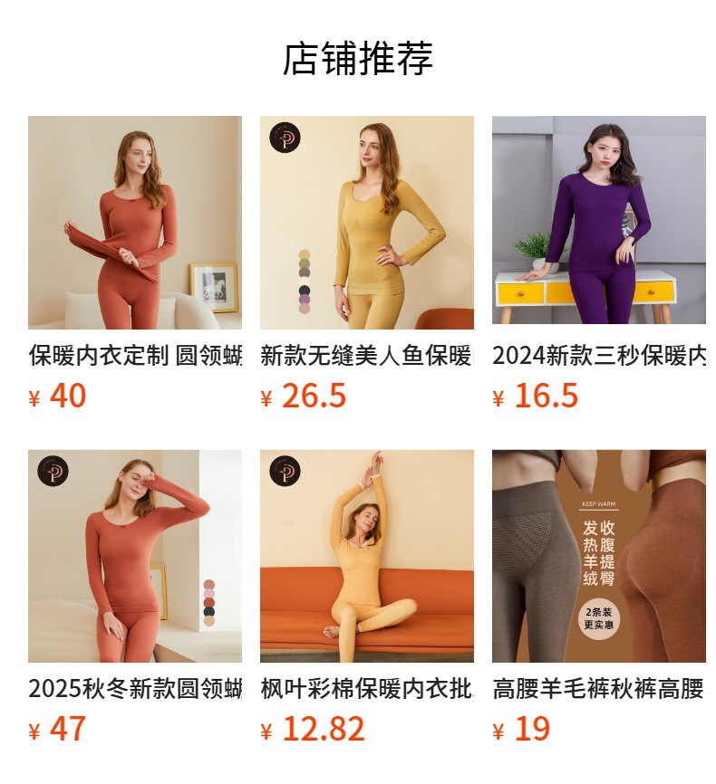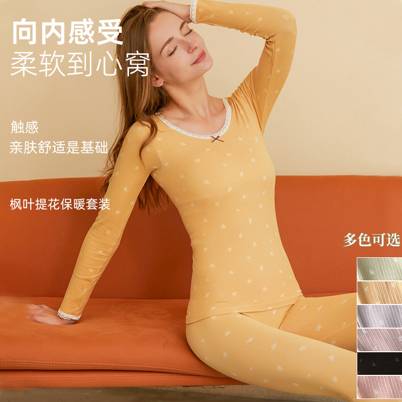 メープルリーフカラーコットン保温下着女性用 2025冬新作 丸首シームレスインナー秋服セット卸売