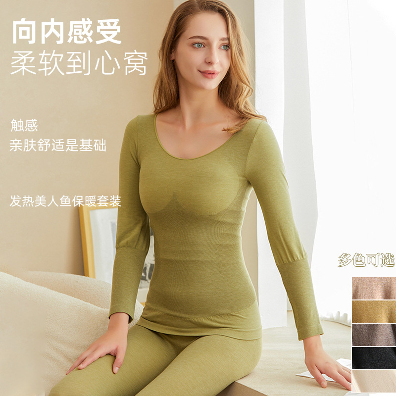 新型シームレス人魚保温下着セットガードル無痕丸首秋衣秋ズボン女性カーディガン卸売り