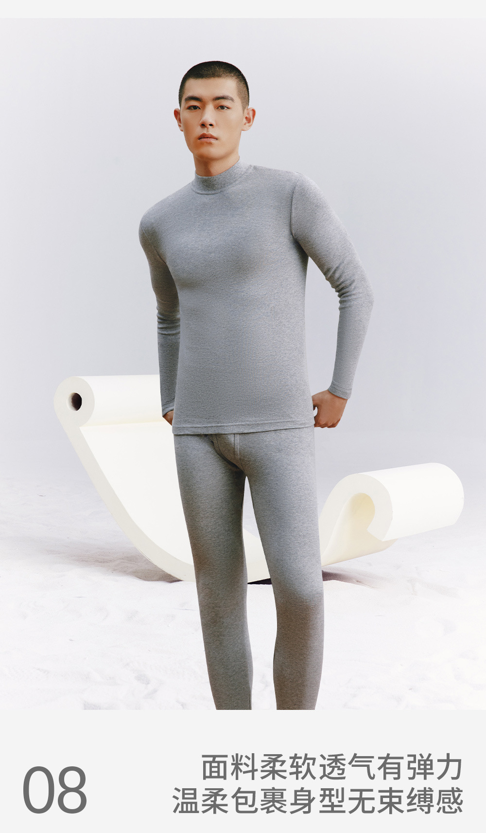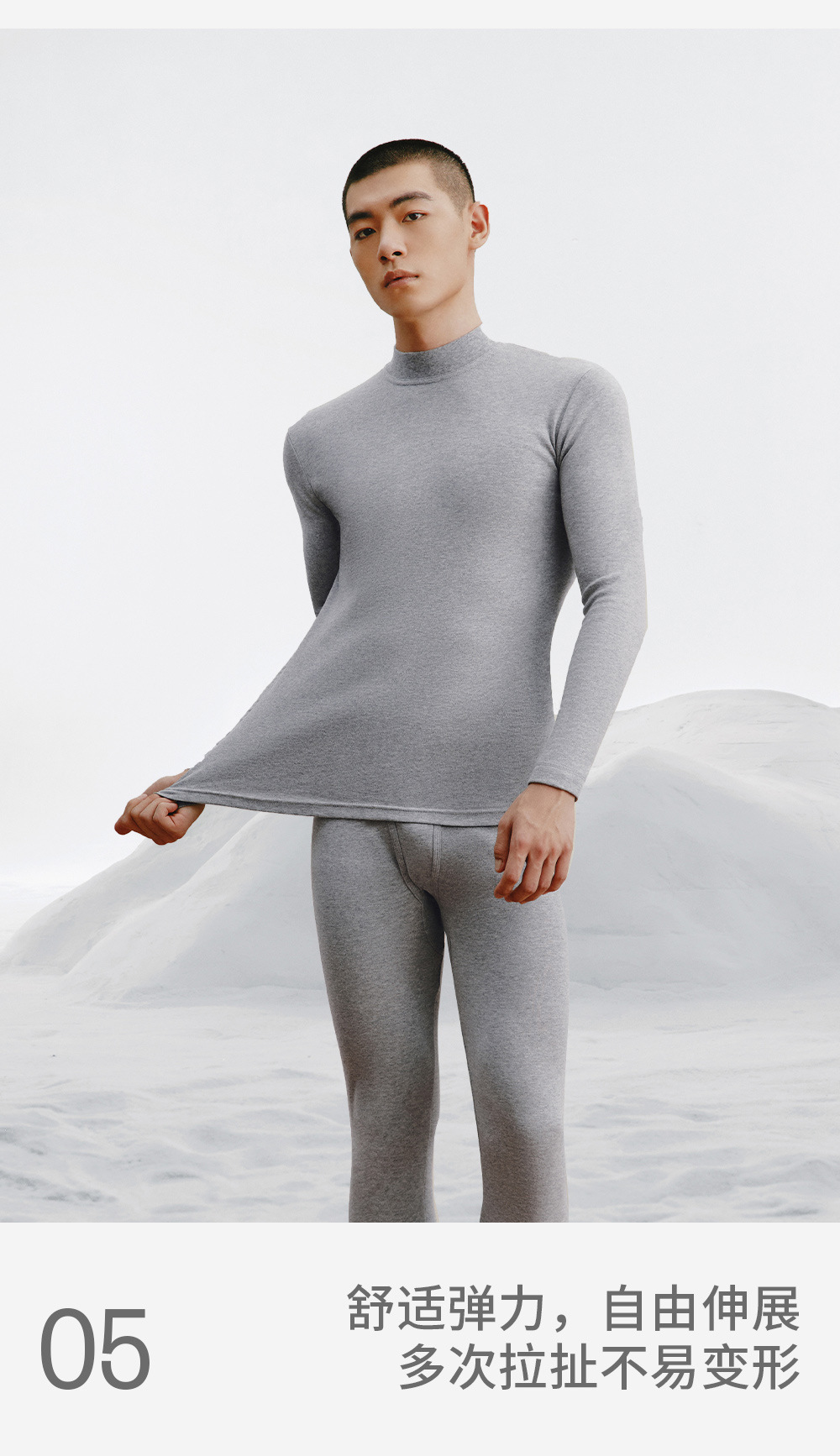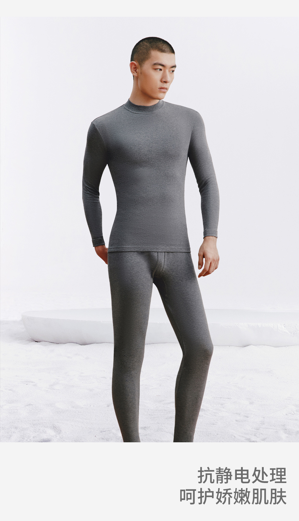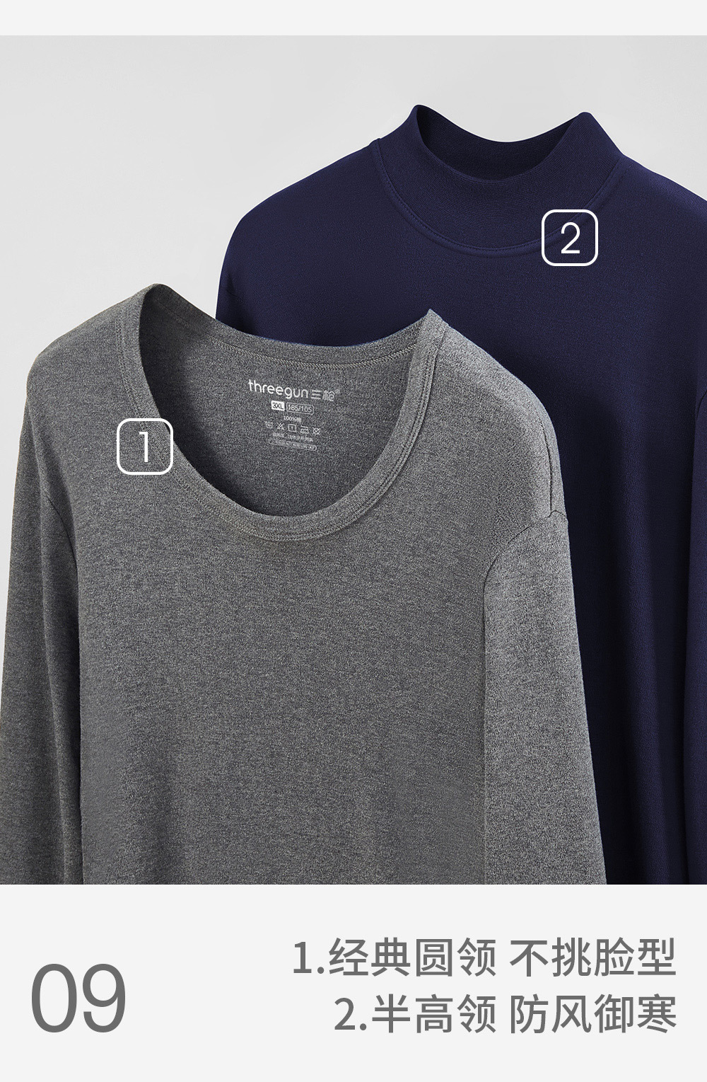 三銃保温下着男新品舒肌綿軽薄弾力綿丸襟男綿毛打底秋衣秋ズボンセット