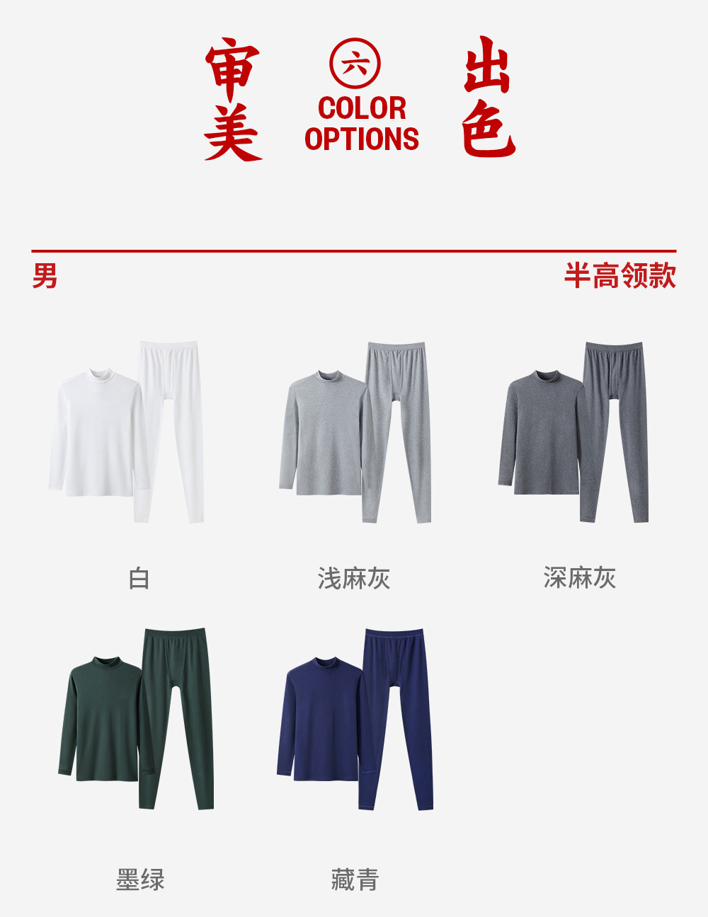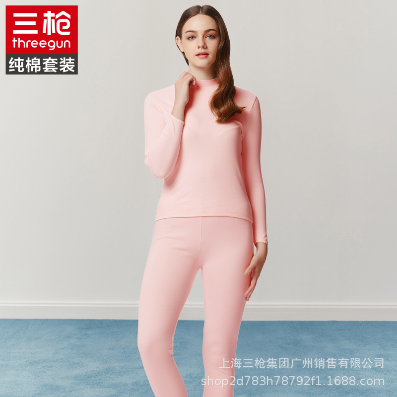 三ガン保温下着 メンズ快適コットンハーフタートルネック レディースカップル秋服秋パンツセット