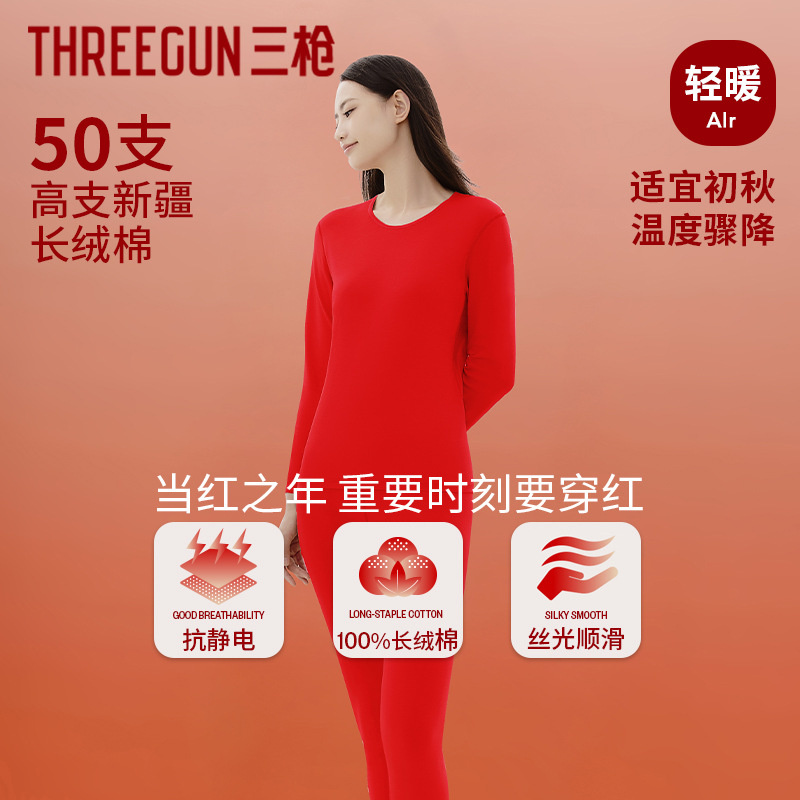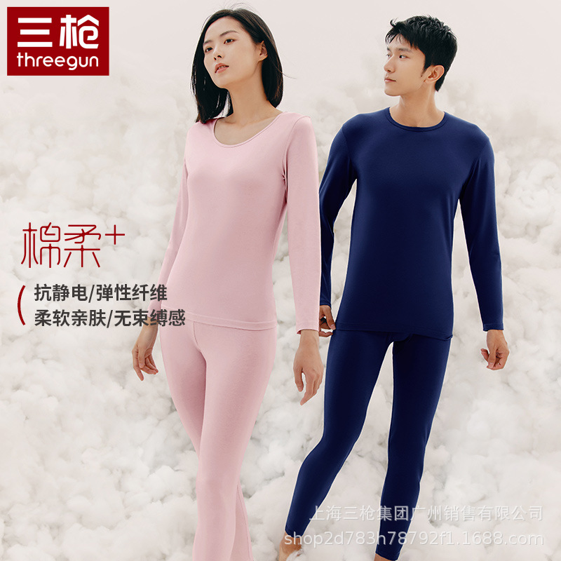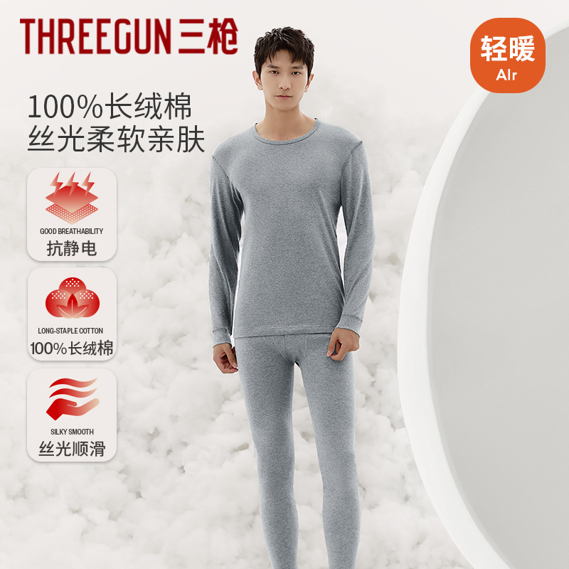 三枪メンズ50番手新疆長繊維綿秋服秋パンツ秋冬保温セット丸首メンズセット卸売