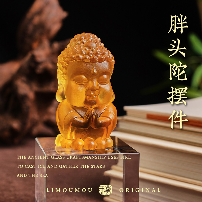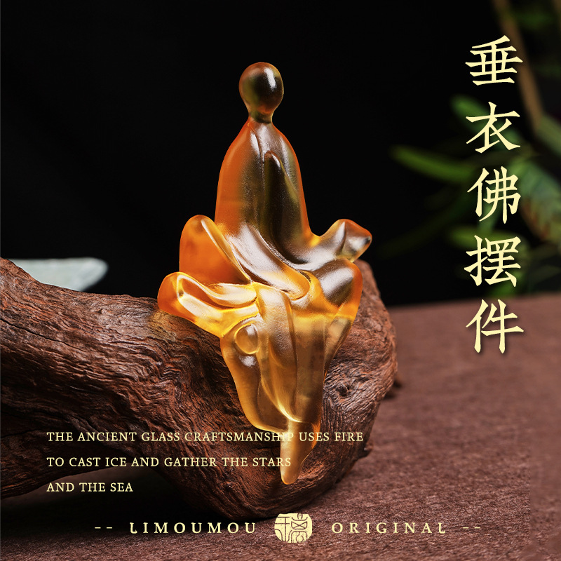 メーカー卸制作古法瑠璃金色垂衣仏テーブル置物瑠璃工芸品玄関书斎置物