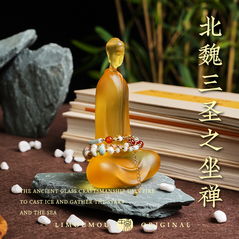 古代ガラス工場が北魏の三聖人のガラス装飾品、ガラス座像、家庭用禅、禅、瞑想を製造および卸売しています。