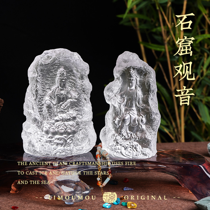 河北省の古代ガラス工場が製造および卸売するガラス石窟観音装飾品、家庭用ティーテーブル工芸品装飾品
