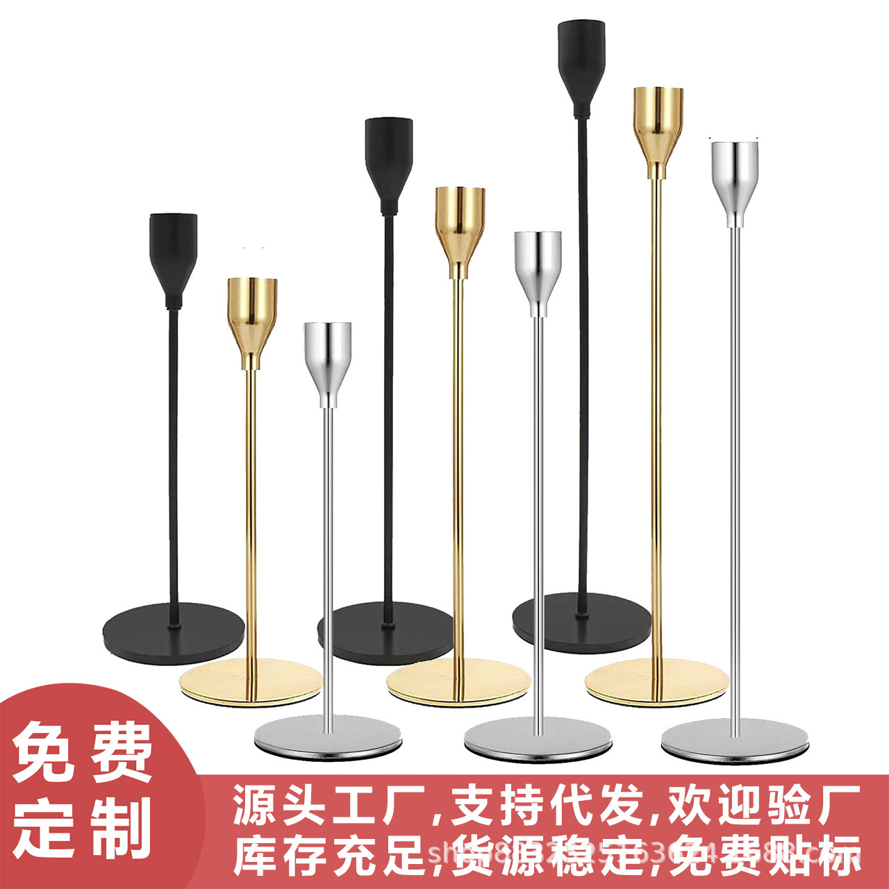 婚礼批发跨境浪漫餐桌装饰品轻奢风烛台摆件复古烛光晚餐道具