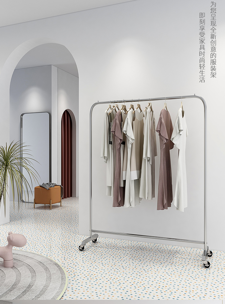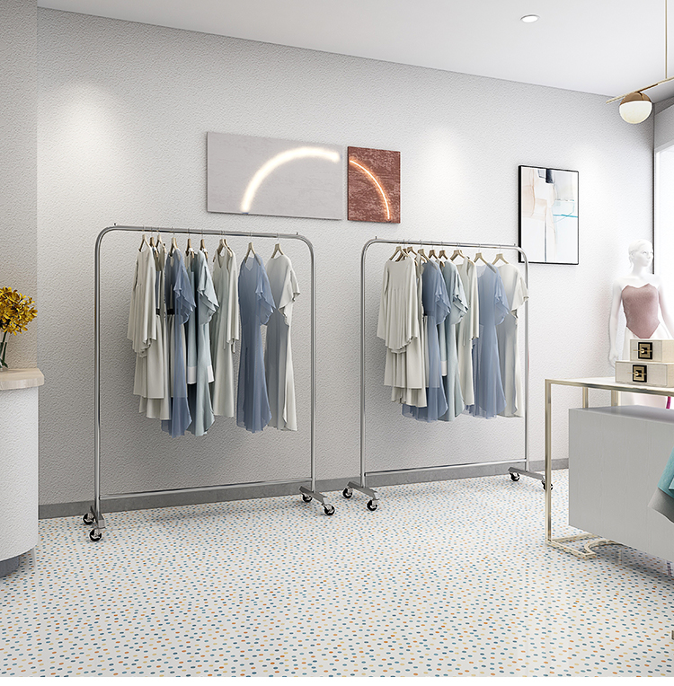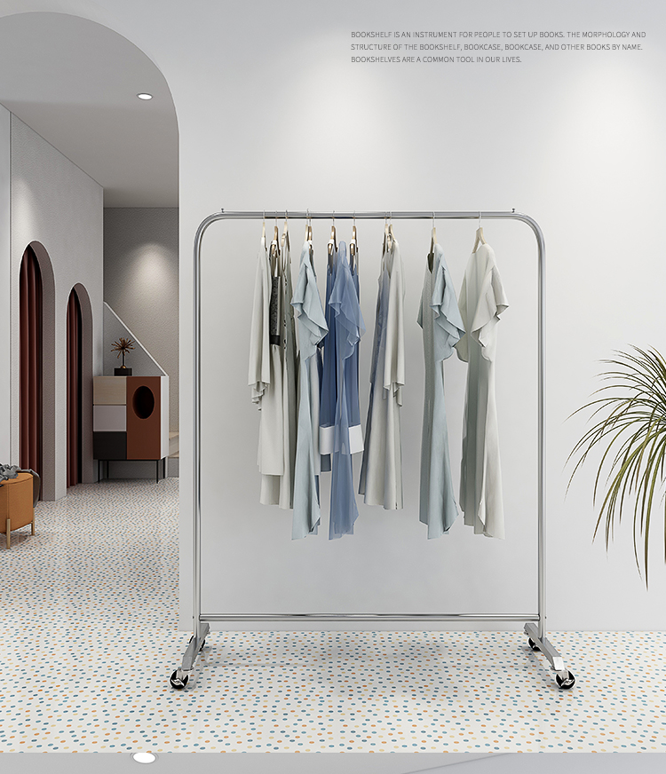 洋服店展示棚ステンレス車輪ハンガー工業風足場買手店陳列床置き棚女装