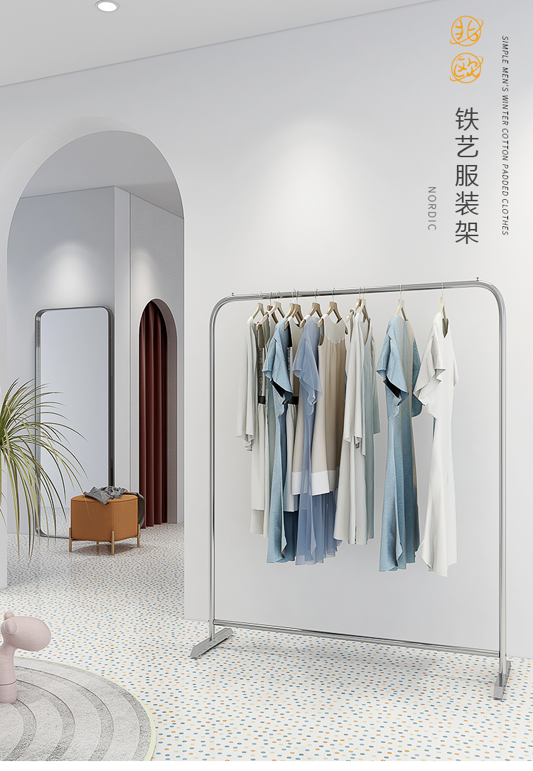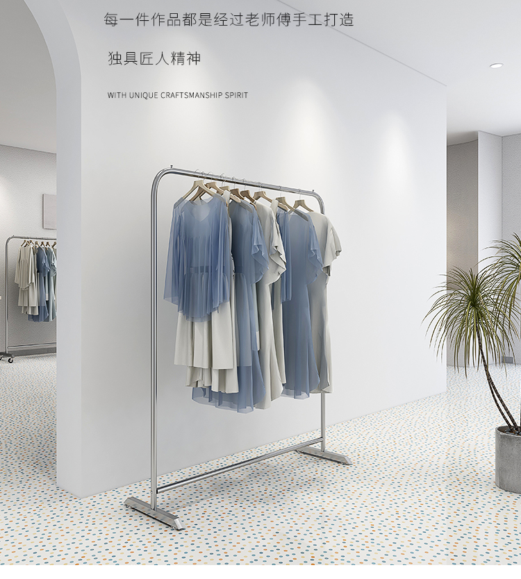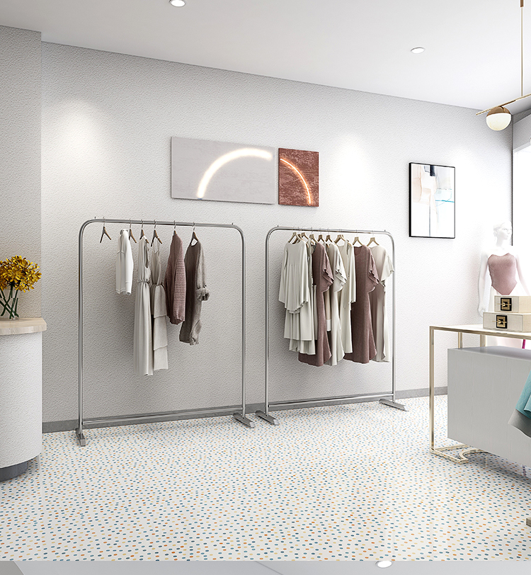 シンプルな非常にシンプルな洋服店の展示棚床置き式ステンレスハンガー