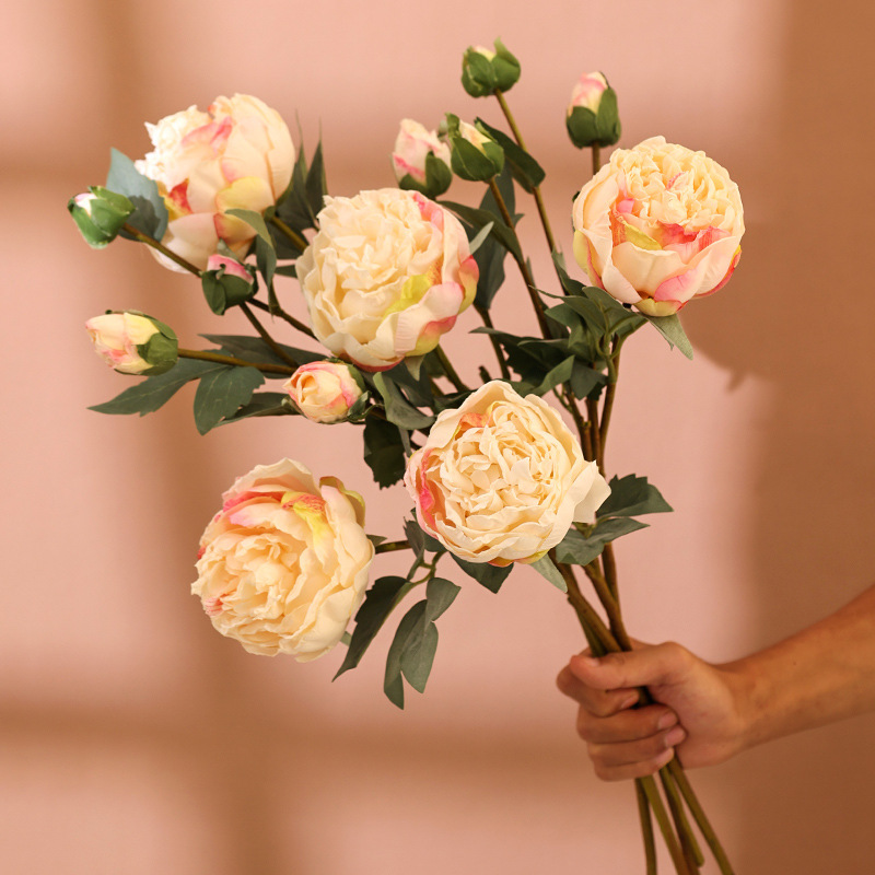 模造花卸売りフランス単枝3頭焦辺牡丹花diy家庭食卓装飾写真道具偽花