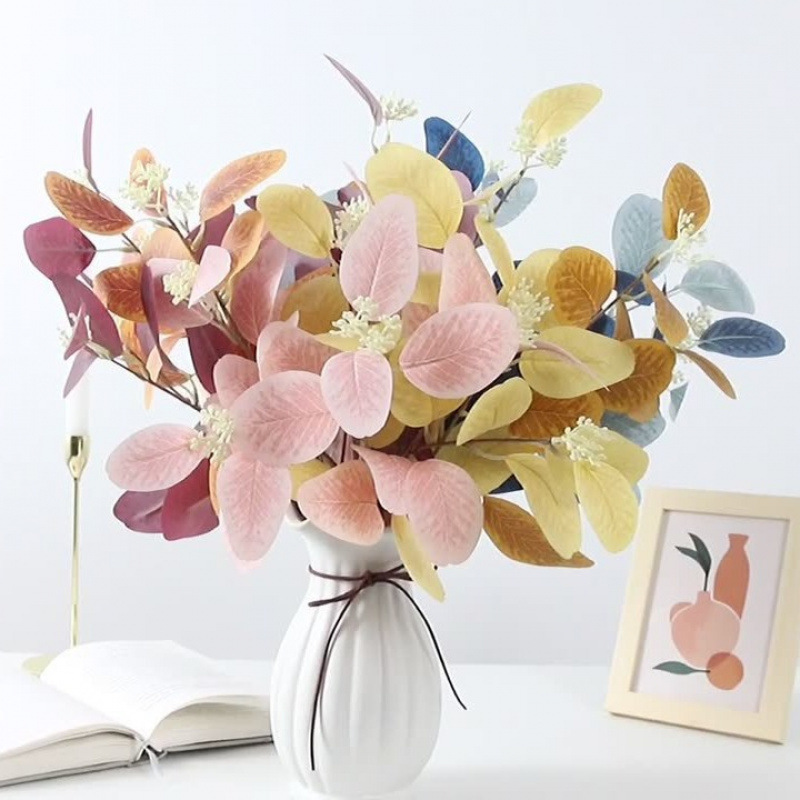 メーカー卸売模擬一枝ユーカリの葉、家の装飾、結婚式会場のレイアウト、金の葉、模擬緑の植物