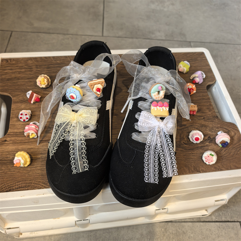 新しいカップルの漫画の靴のバックルはケーキの蝶結びの目玉焼きの靴の花の少女の心の運動靴の装飾を取り外します。