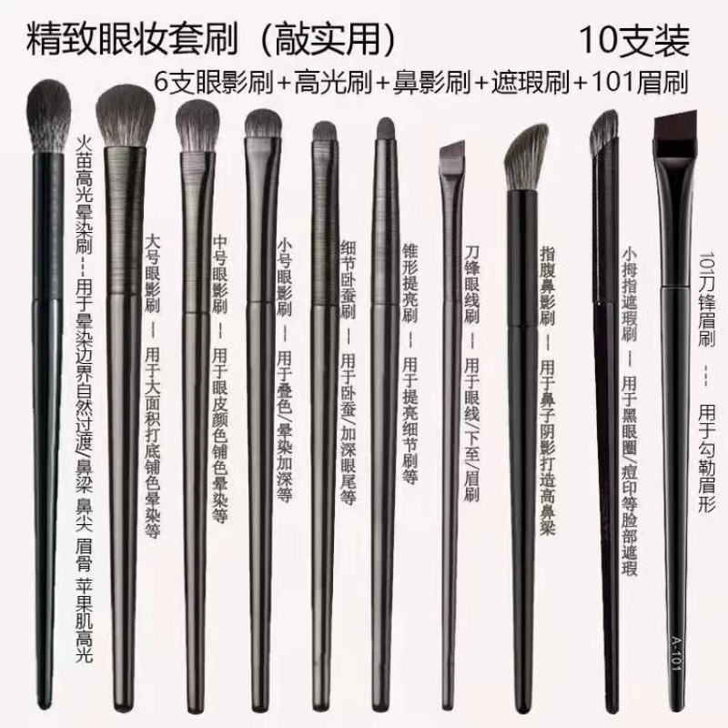 滄州の柔らかい毛の10本のアイシャドーは小さいサイズの目の部に寝て蚕の細い点に寝て刃のアイラインの化粧ブラシのセットに染めます。