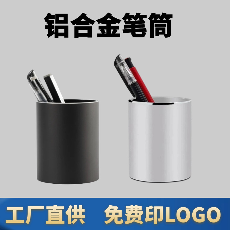 起爆アルミ合金円形筆筒デスクトップ収納ビジネスオフィス金属化粧品創意筆筒