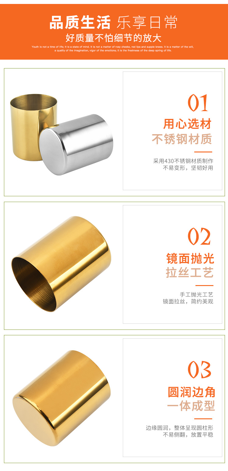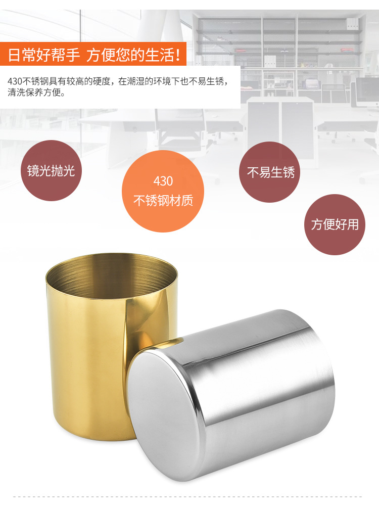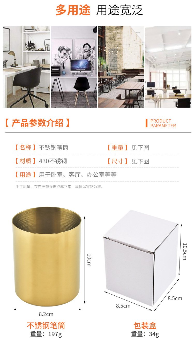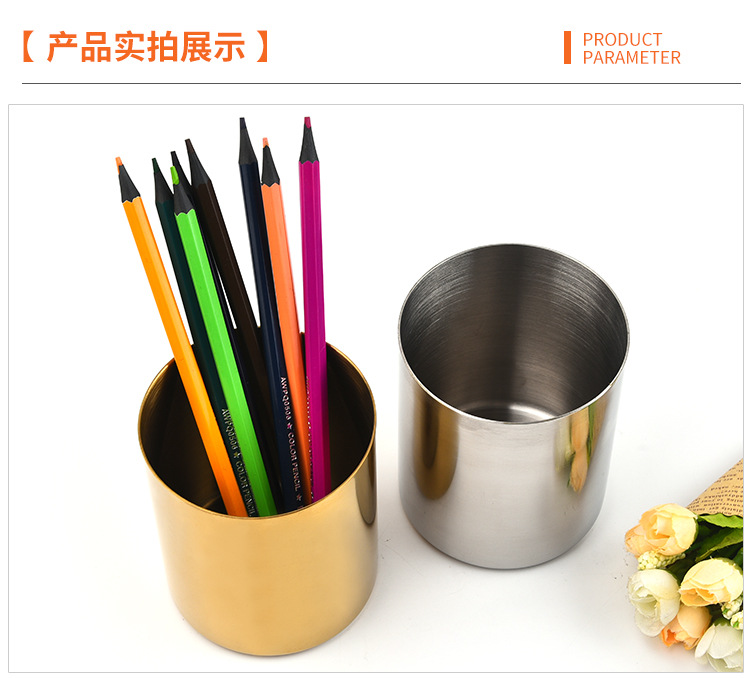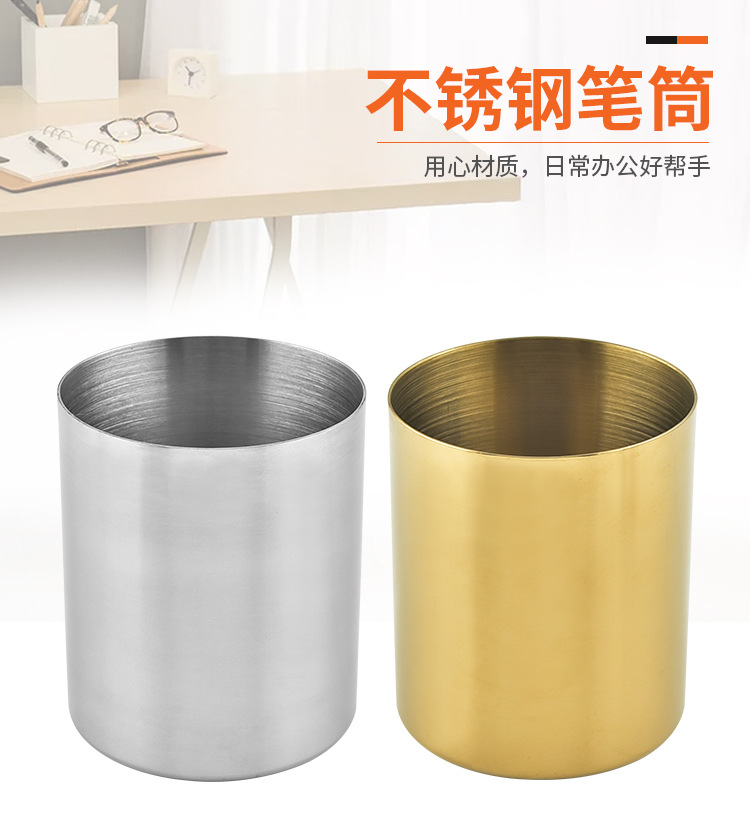 北欧金色不锈钢圆形笔筒金属创意文具儿童礼品收纳笔筒摆件