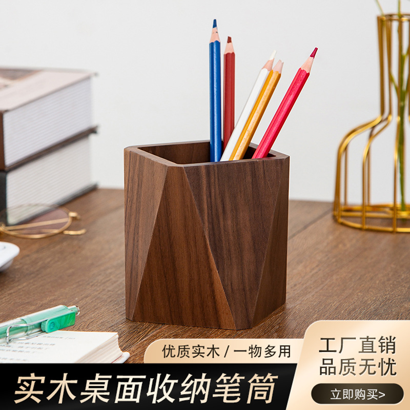 黒胡桃木筆立て創意実木収納ケースオフィスデスクトップ置物筆立て胡桃木高級感軽豪華
