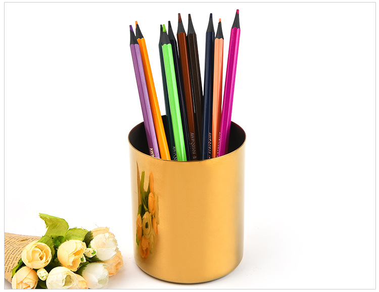 北欧ゴールデンステンレス鋼ラウンドペンホルダー金属クリエイティブ文具子供のギフト収納ペンホルダー装飾品