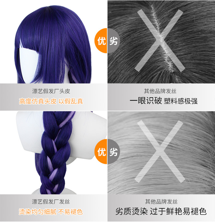 高温耐熱性ウィッグ コスプレ 神雷電将軍 ウィッグ コスプレ シリコン製リアル頭皮 薄型ウィッグ ヘアアクセサリー 編み込み
