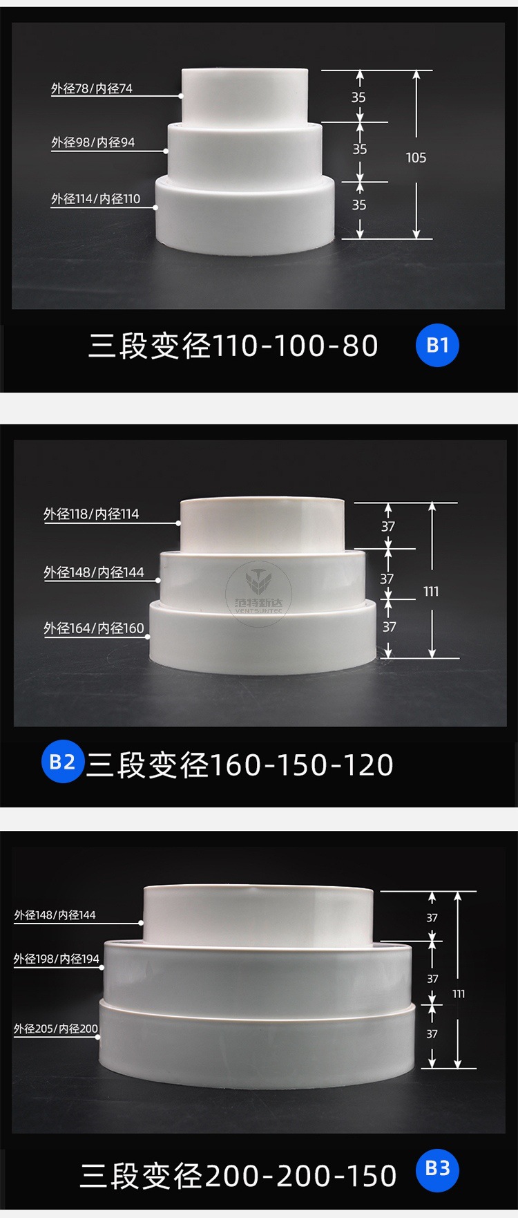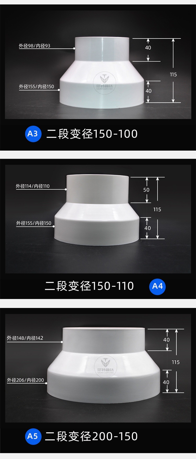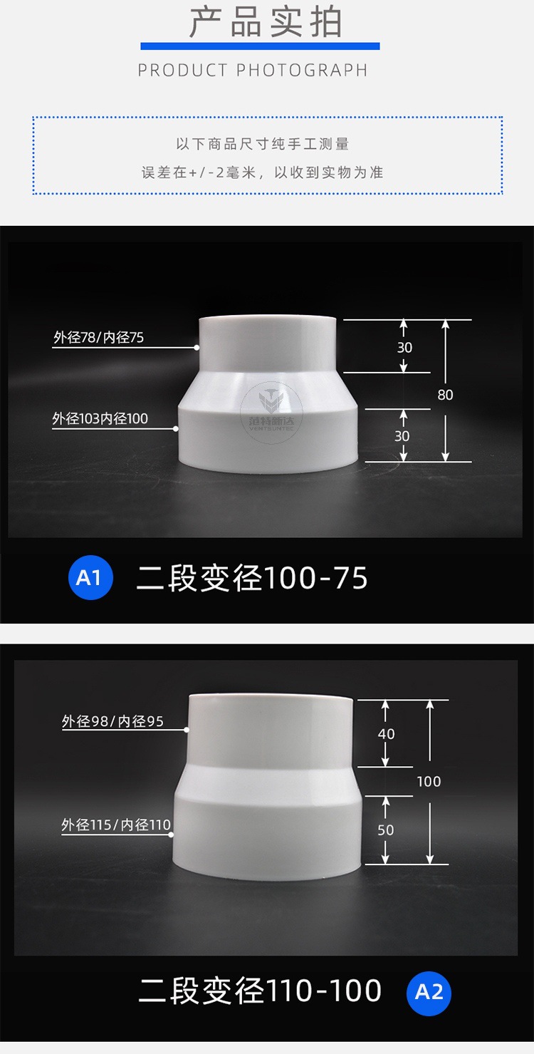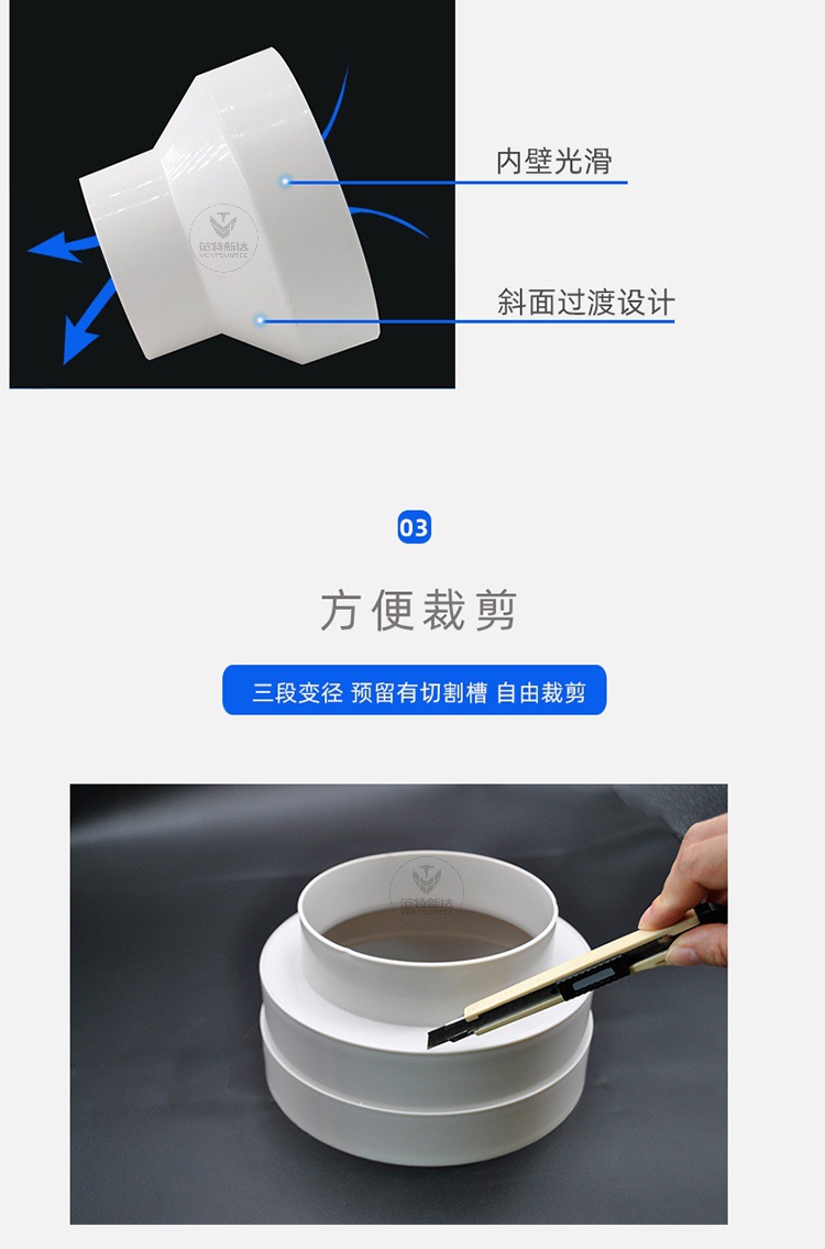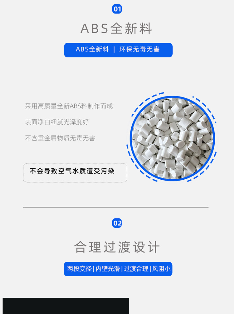 Abs通風パイプ変径ジョイントpvcプラスチック円サイズ頭新風排風パイプ異径接続変換
