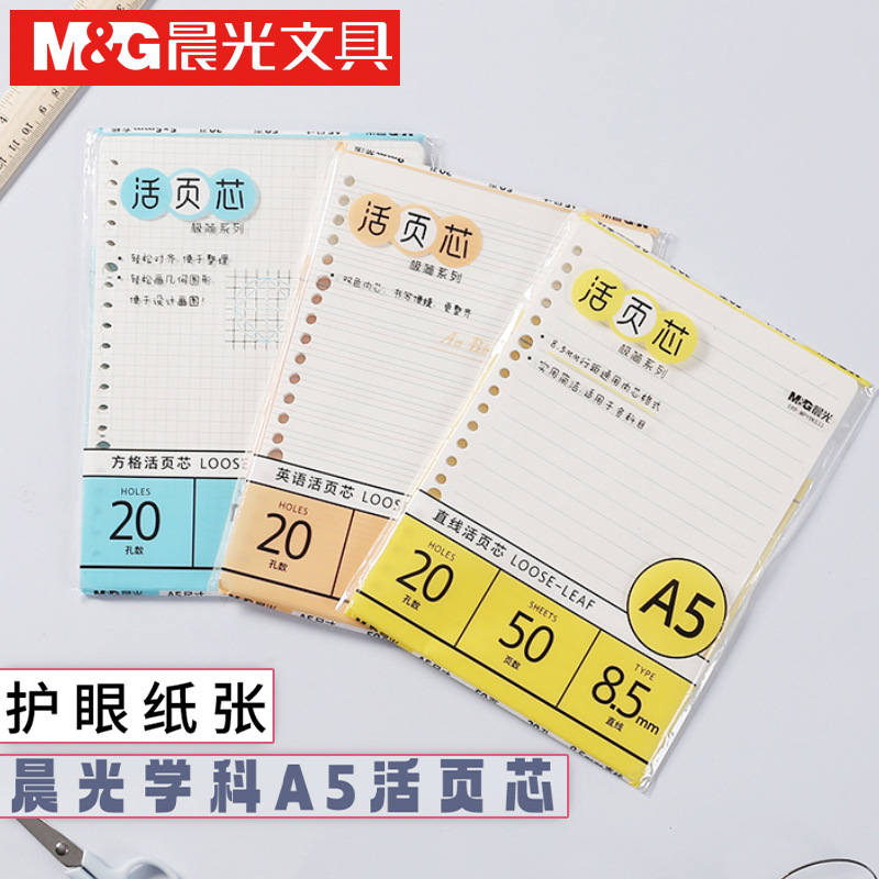 晨光活页芯 A5/B5活页本纸替芯内芯方格空白英语横线活页夹芯8mm