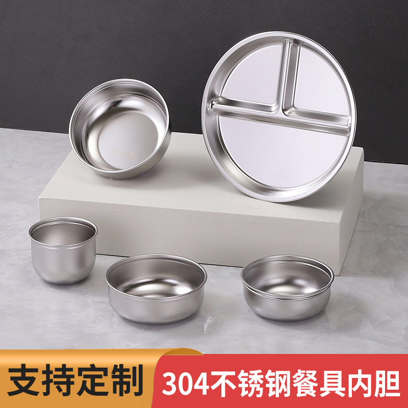 亚马逊硅胶不锈钢蜗牛餐盘儿童餐具减脂盘防滑盘碗杯套装304内胆