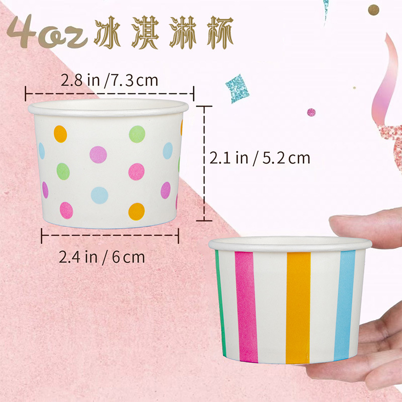 一次性冰激凌杯子4oz双淋膜纸碗加厚节日派对小号冰淇淋纸杯批发