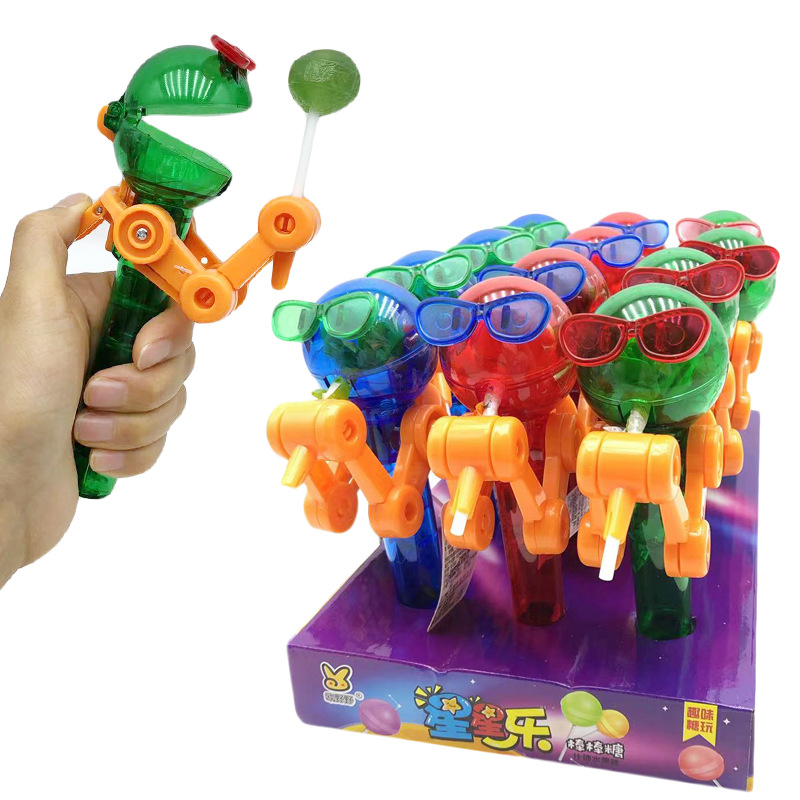 ネットは子供の男女の友達のロボットのロリポップを送って銃を収めて砂糖の神器人のおもちゃのアイデアの小さいプレゼントを食べます。