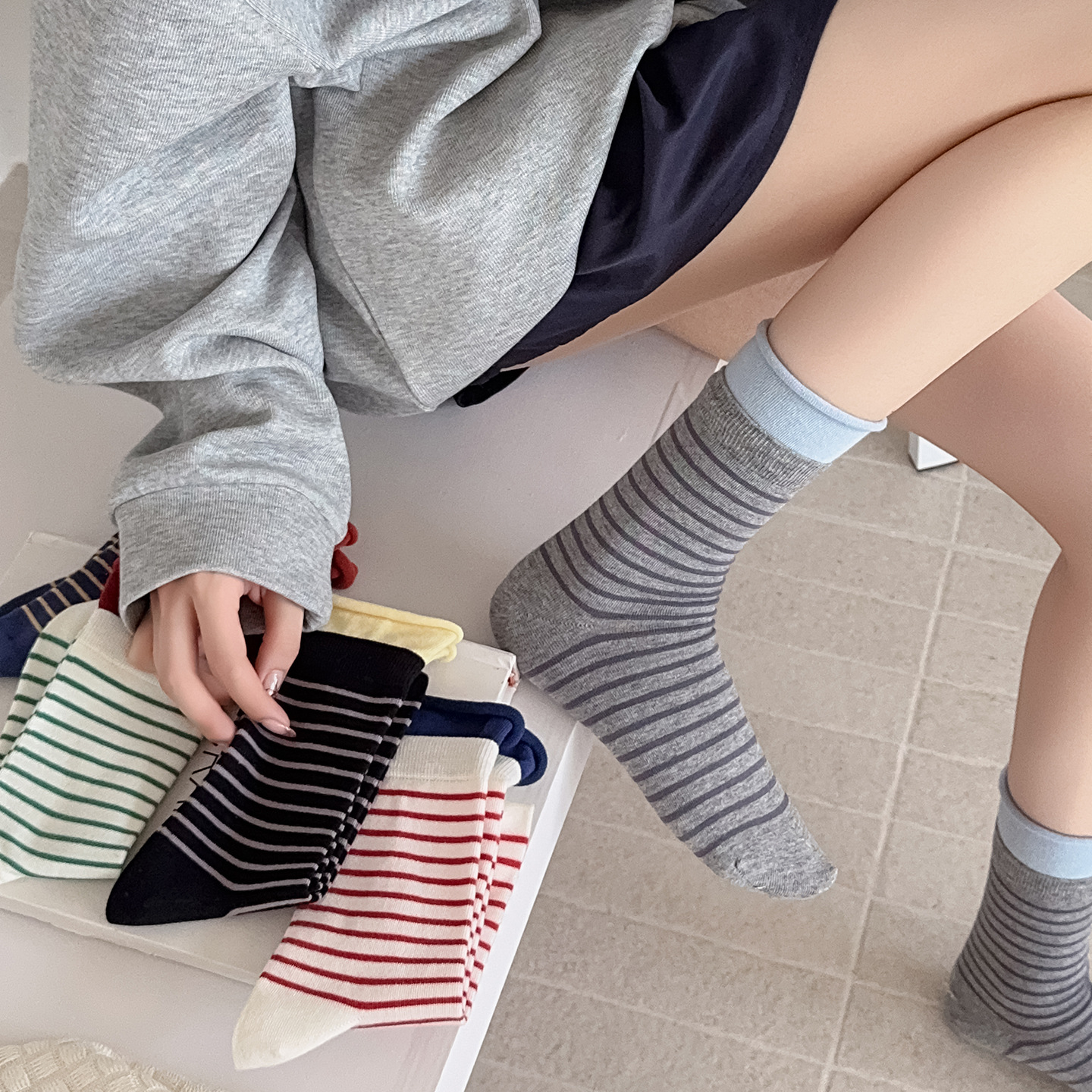 2022秋の新型靴下の女性ネットの赤いラベルの色合わせの縦縞の中の筒の靴下は明らかにやせています。