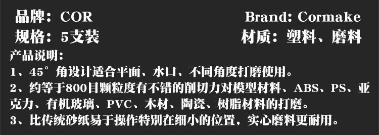 柯作模型製作工具乾湿両用水洗い復活平面45度角研磨石磨き棒