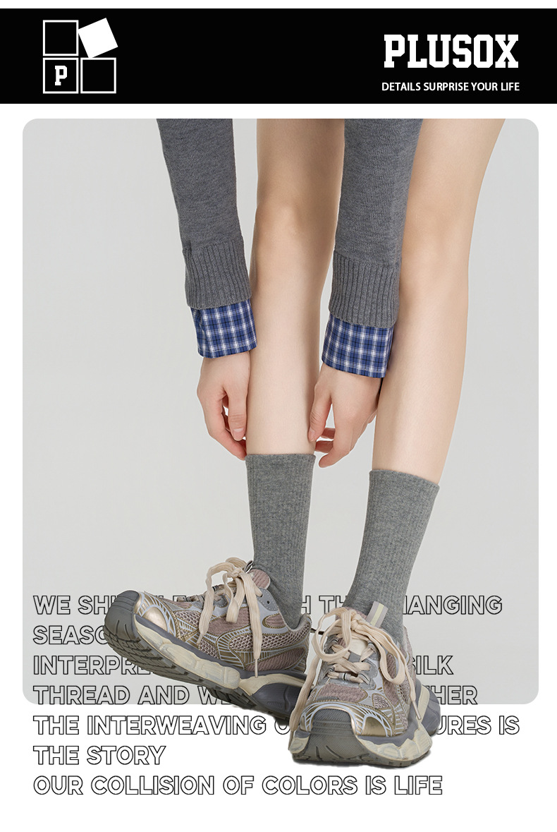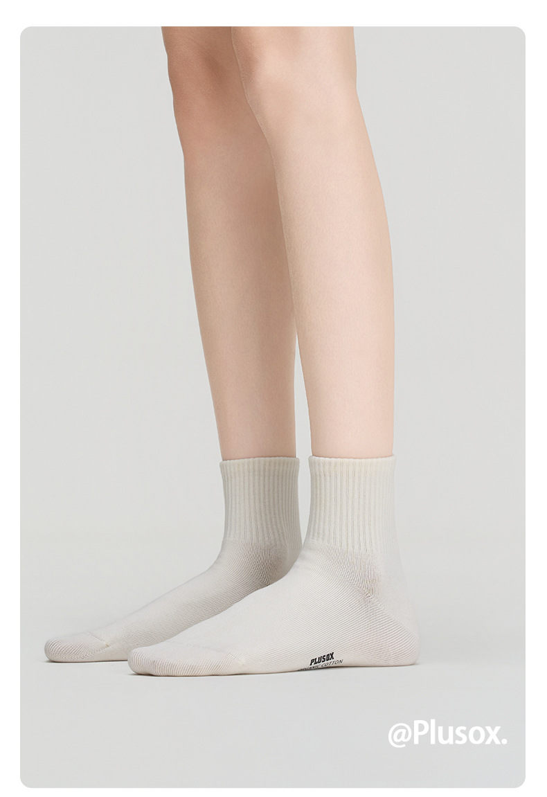 Plusオックス靴下レディースミディアムソックスinsファッションブラックスポーツ秋冬カップル白いソックス純色合わせ革靴男
