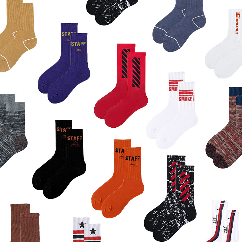 潮牌ins原宿風運動タオル底レトロ流行中筒綿靴下男女スケートボード長靴下潮