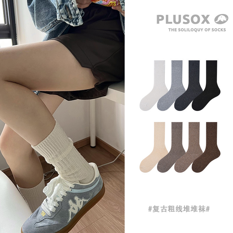 plusox トレンディなブランド ins 日本のレトロな靴下メンズ純綿ミッドふくらはぎ秋と冬のストッキング吸汗性女性のパイルソックス