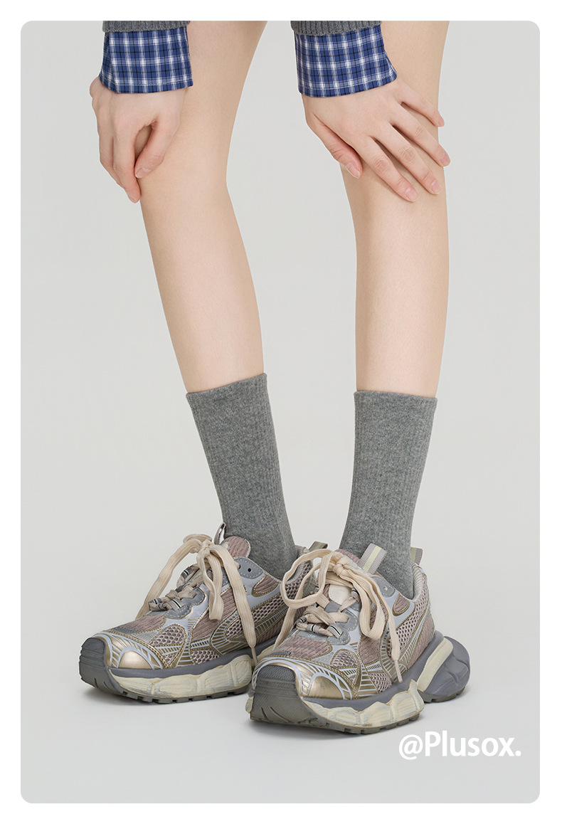 Plusオックス日系INSレトロ中筒美ラード系無骨純色吸汗靴下綿靴下
