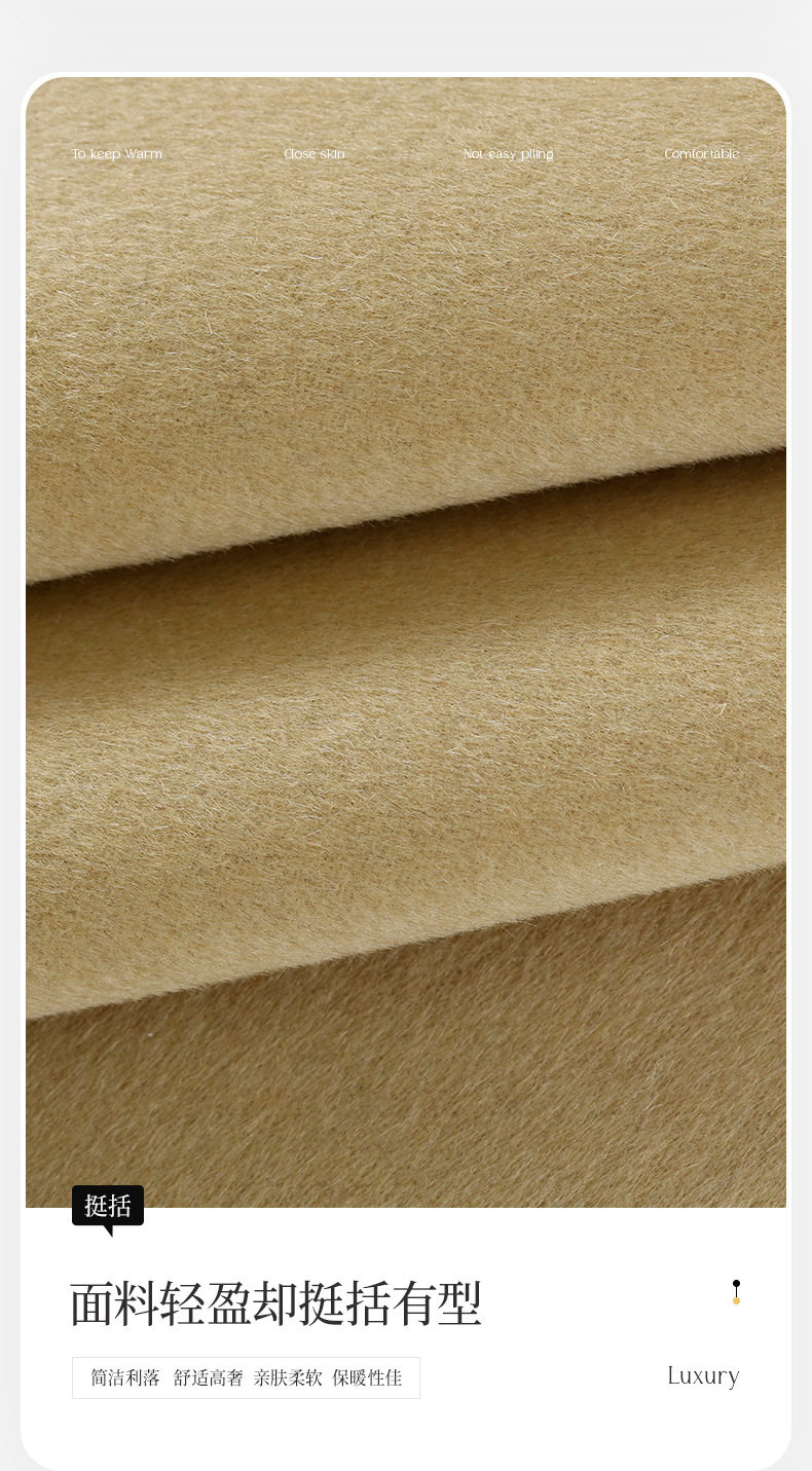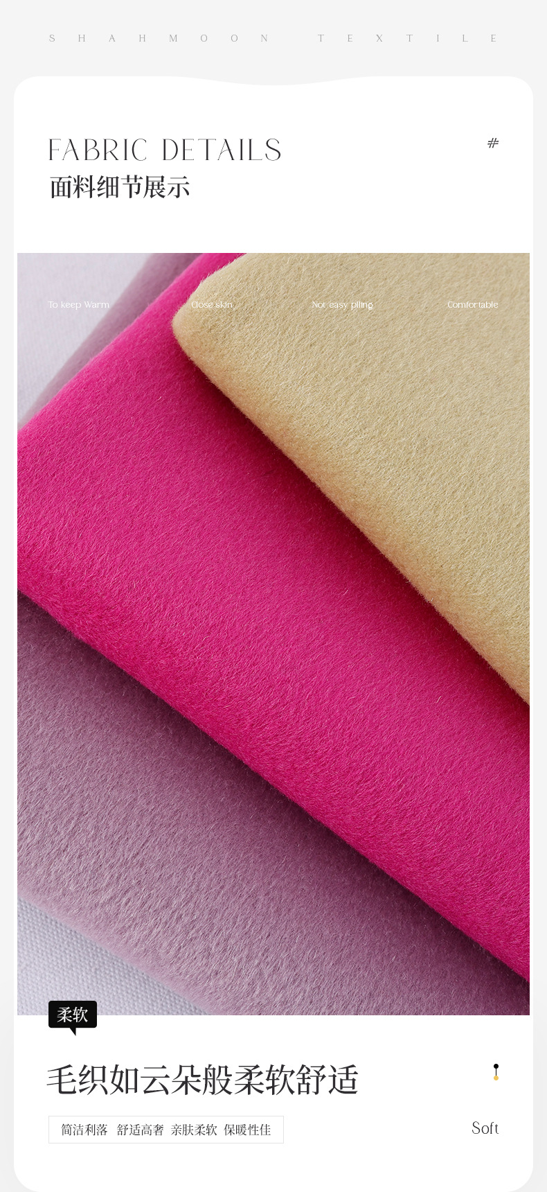 23720 5カシミヤ10绢糸順毛85豪毛両面生地秋冬コート生地