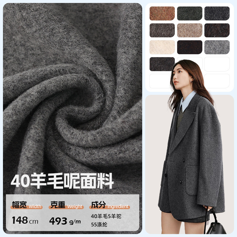 24101-c 40ウール5アルパカ55ポリエステル粗織生地コートダウンジャケット綿入れベスト生地