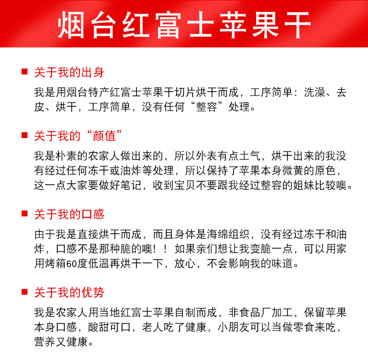 乾燥リンゴ、3回蒸し、3回乾燥、保存料不使用、砂糖不使用、アクス氷砂糖ハートリンゴスナック、煙台威海名物