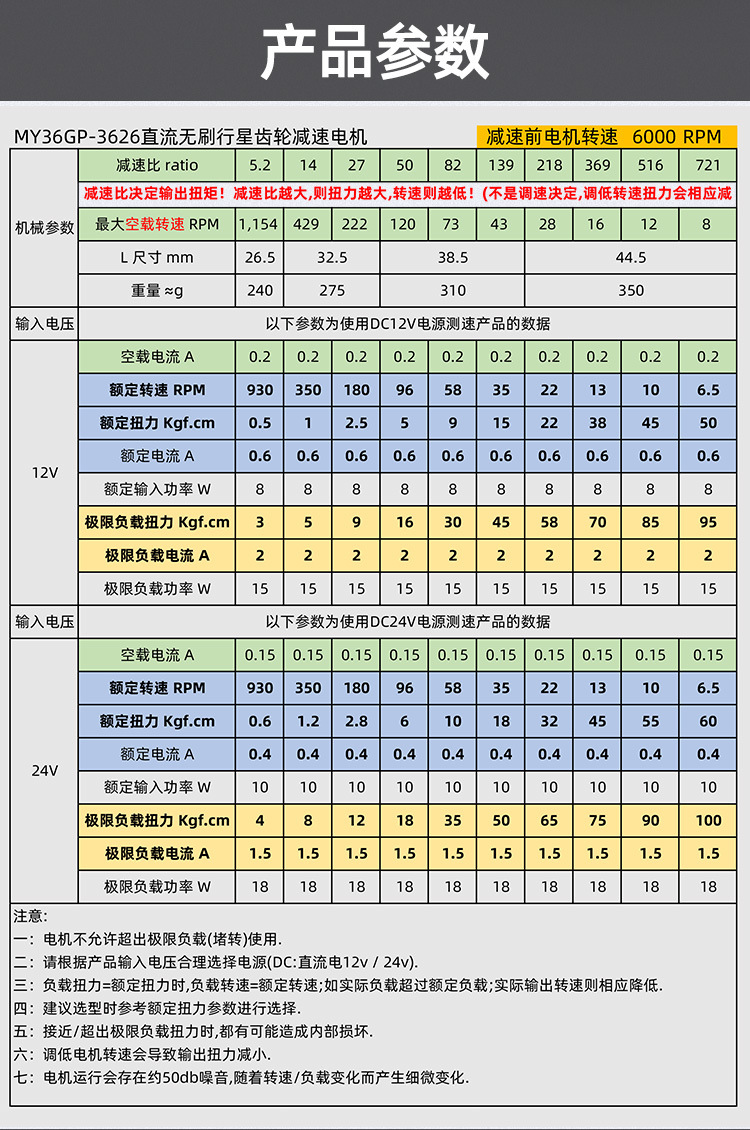 名揚マイクロブラシレス直流減速モータ24v 3626遊星歯車低速モータ12ボルト小モータ