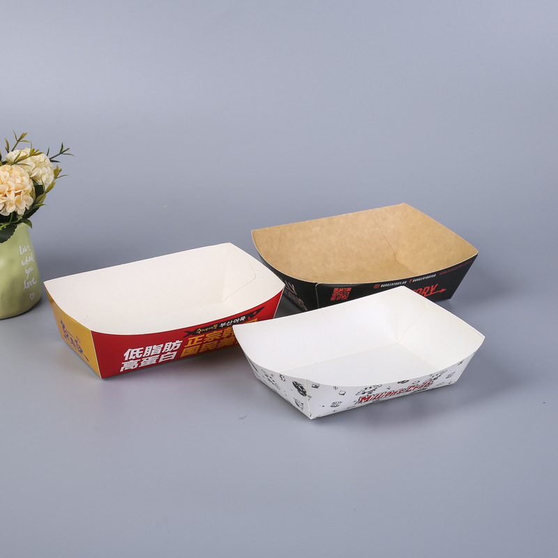 クラフト紙の船の箱の四角形の軽食は箱の夜市を包んで鶏肉の箱を焼きます。