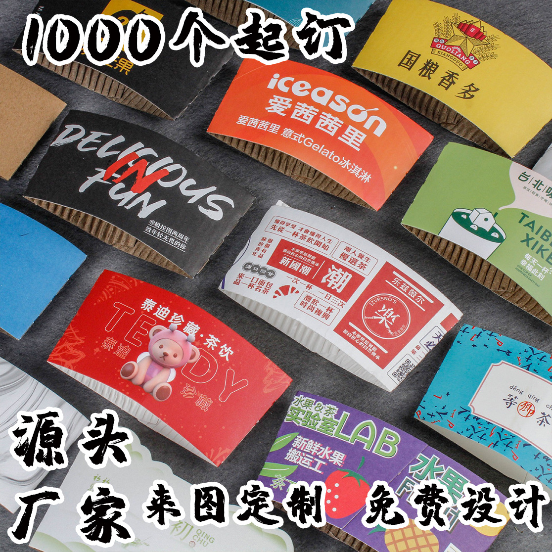 一次性暴打柠檬茶杯套隔热冷饮纸杯套瓦楞奶茶纸杯套印刷LOGO