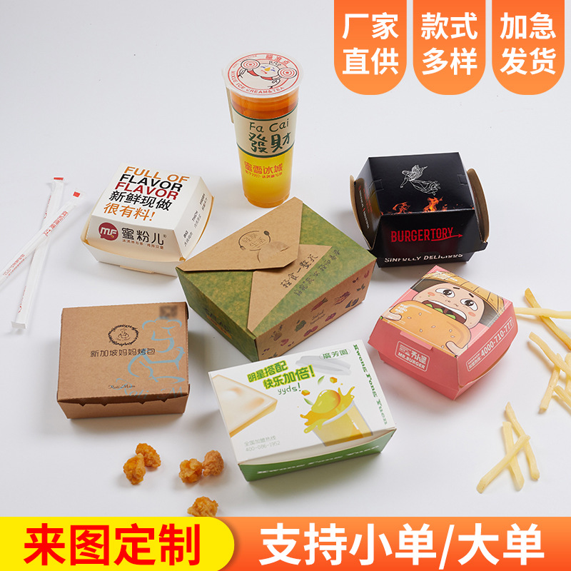 クラフト紙の弁当箱は一度にフライドチキン箱とファストフードの出前紙箱を梱包して独自のロゴを制定する