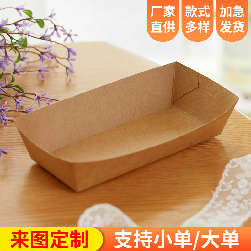 使い捨てクラフト紙ボートボックス、折りたたみ式オープン耐油スナックボックス、フライドポテトボックス、チキンポップコーンボックス、食品包装ボックス