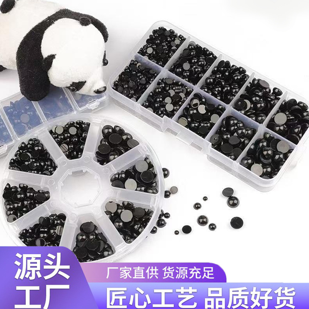 黑色动物眼睛平底珠diy手工编织玩偶制作发夹子材料包发饰品配件