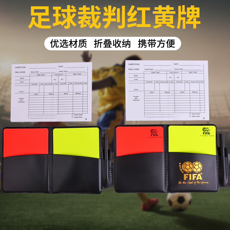 サッカー厚手赤黄牌記録本赤牌黄牌審判工具革カバー付き記録紙鉛筆審判用
