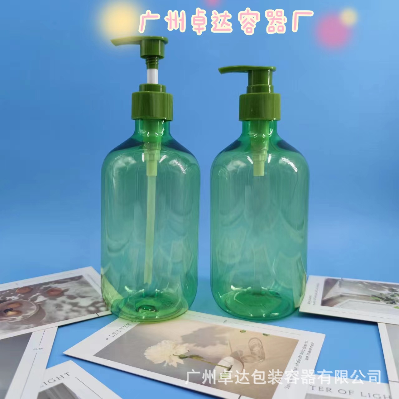 メーカーの現物は500mlの緑色の斜めの肩のシャンプーのリンスの姜力の同じタイプの瓶のpetのプラスチックの瓶を供給します。