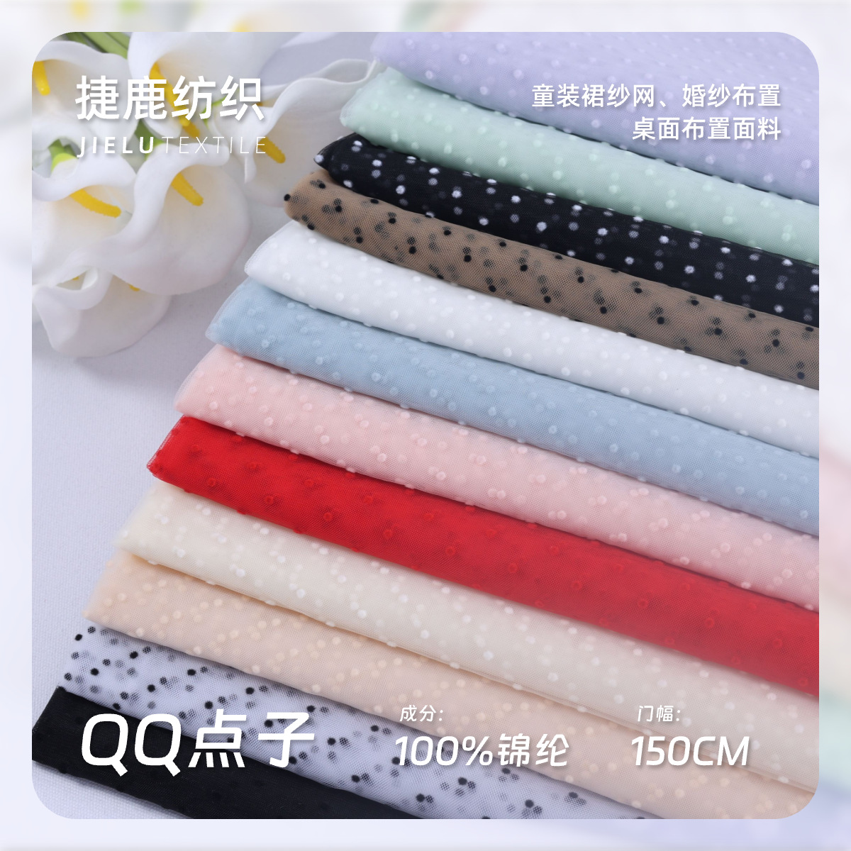 植毛波点網糸生地スイスネット美国網植毛diy仙女スカート童装lolita軟糸