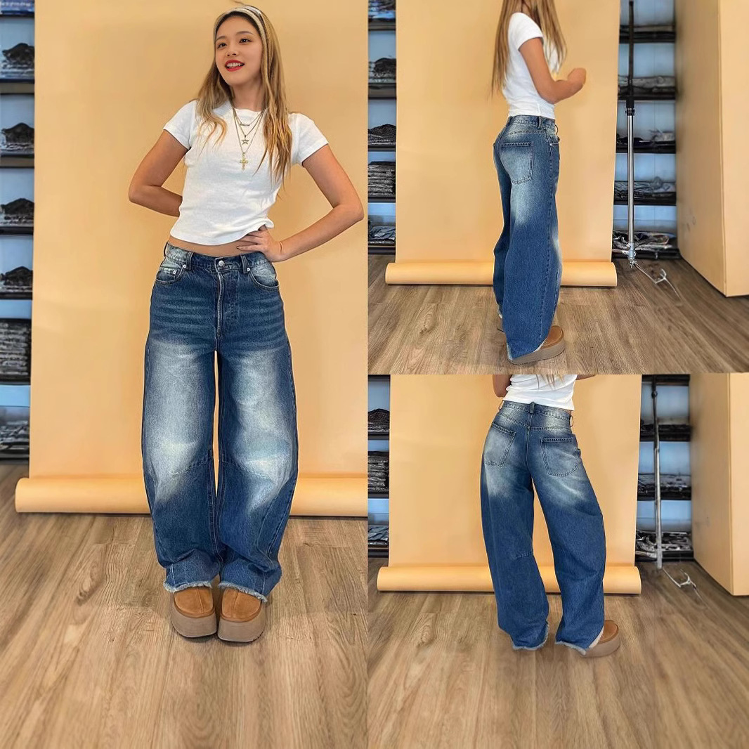 外国貿易TEMU速売通アマゾンジーンズ女2025新型レトロ長ズボンゆるいストレートズボン