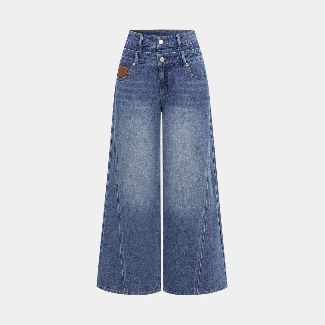 欧美跨境2025新款高腰阔腿牛仔裤女宽松显瘦水洗直筒裤女式牛仔裤
