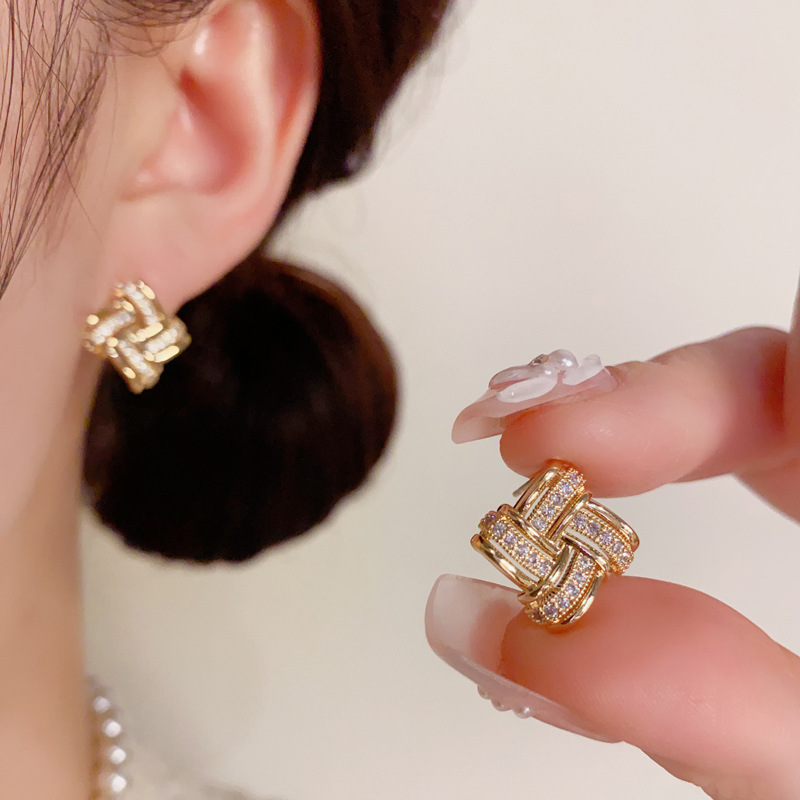 日韓の気質のファッションの二重の透かし彫りのジルコンの輪の耳のボタンは精巧で小さくて、デザイン感のイヤリングの卸売りになります。
