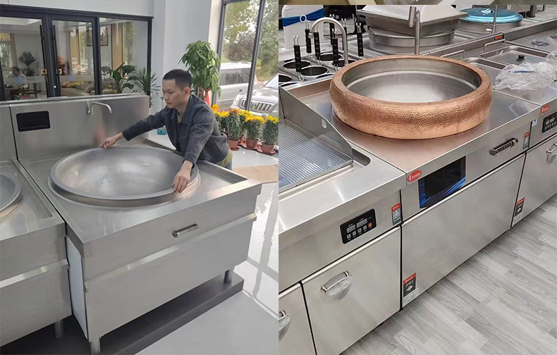 業務用電磁単頭単尾炒め炉 15KW ハイパワー電気炒め炉凹面ホテルキッチンダブル電磁炒め炉