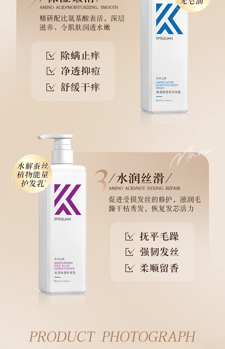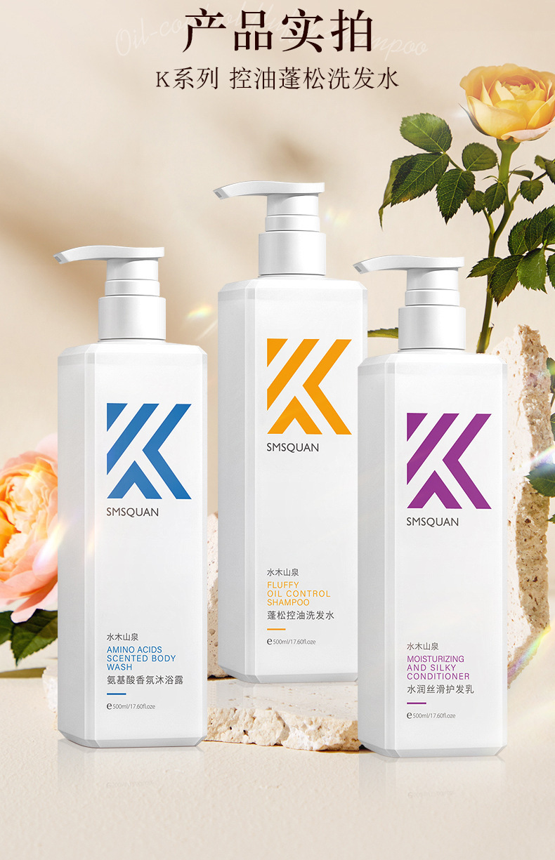 Shuimu Shanquan ふわふわオイルコントロールシャンプー スムースアミノ酸フケ防止シャンプー コンディショナー シャワージェルセット