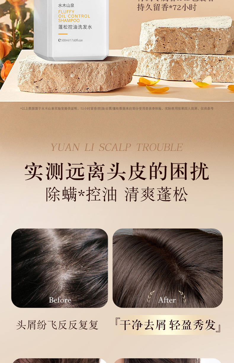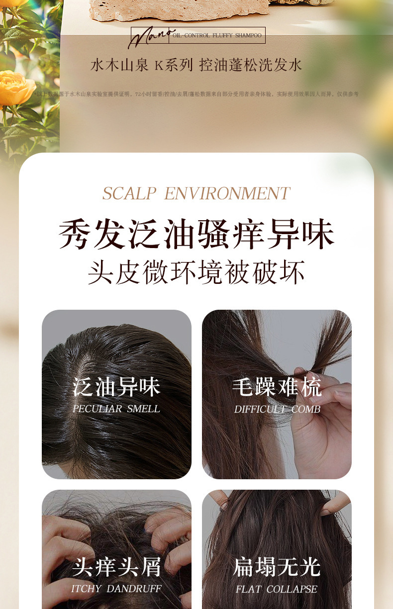 水木山泉控油蓬松氨基酸洗发水去屑止痒控油香水味持久留香无硅油