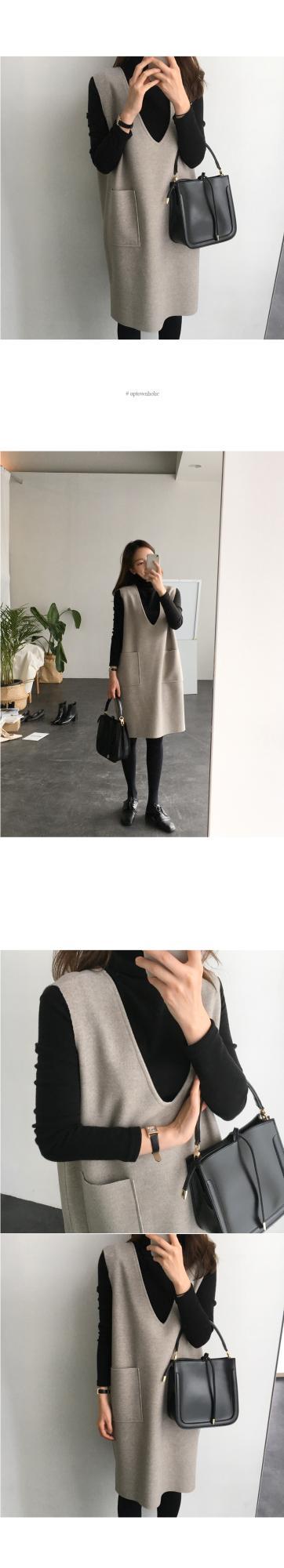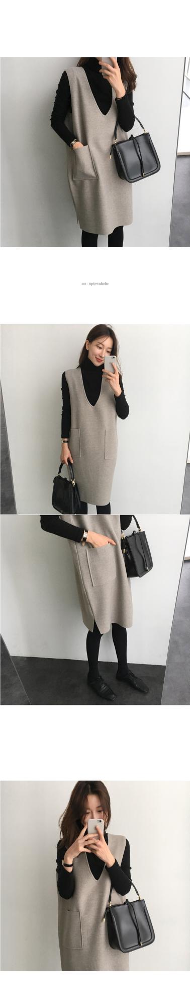 Vネックベストドレス秋冬新作韓国風ミドル丈ベストスーツツーピースファッションカジュアル